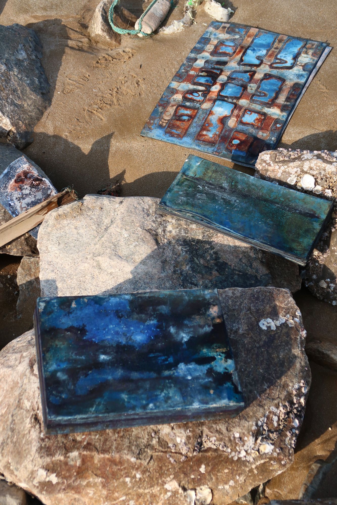靛蓝、柿漆、纸、海滩废弃物等综合材料
