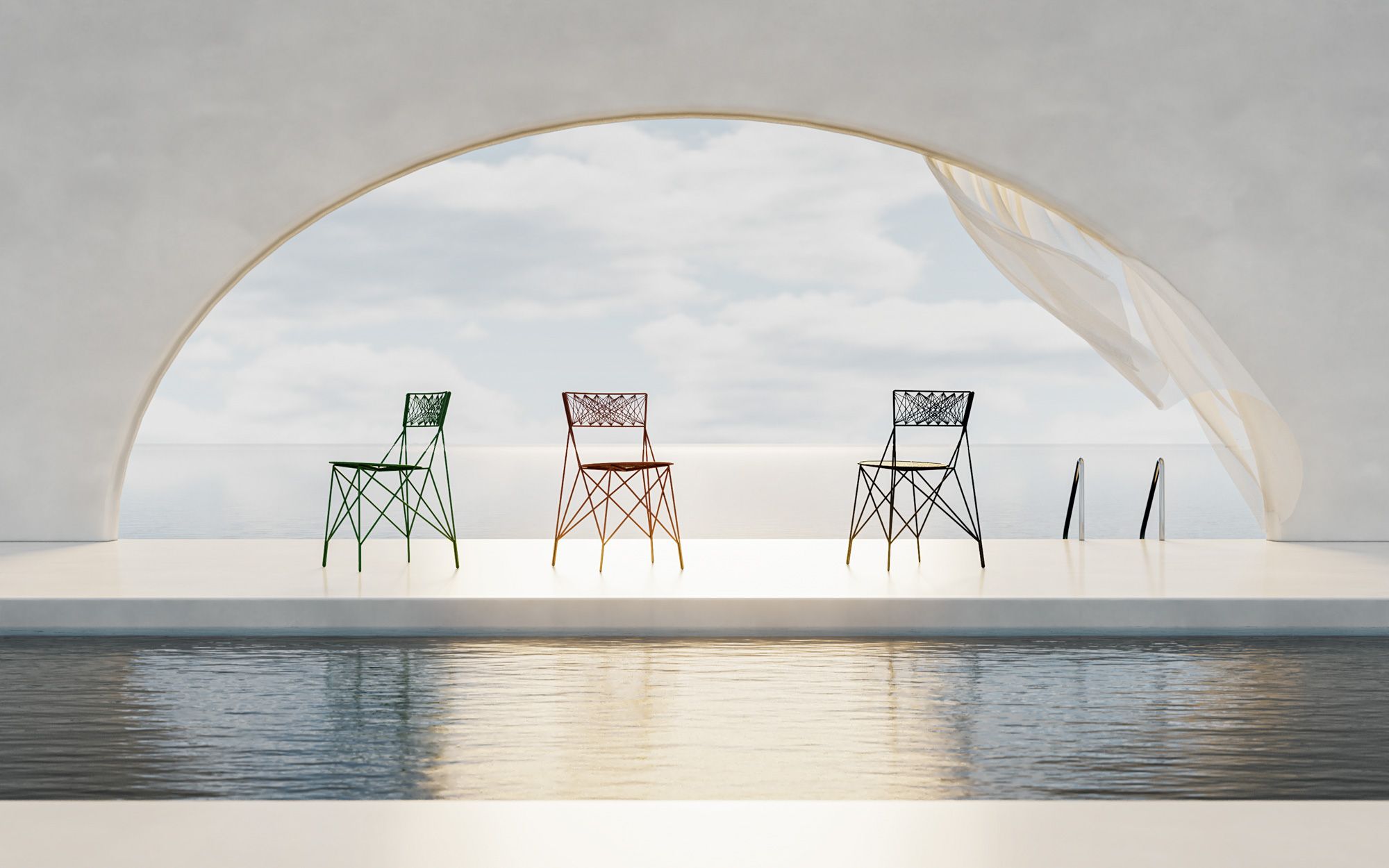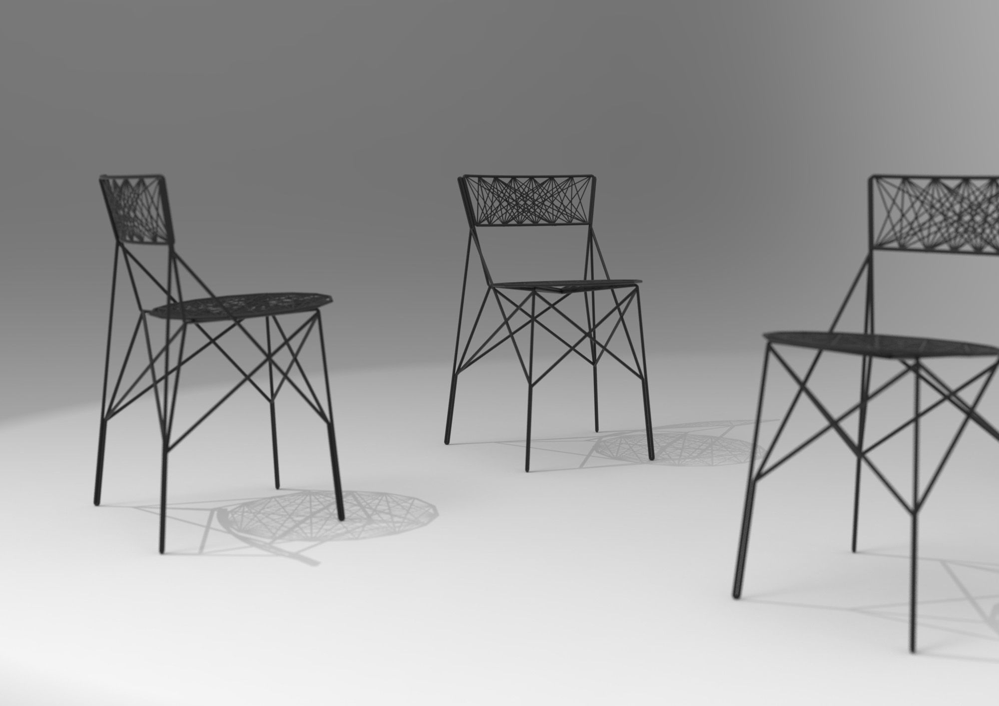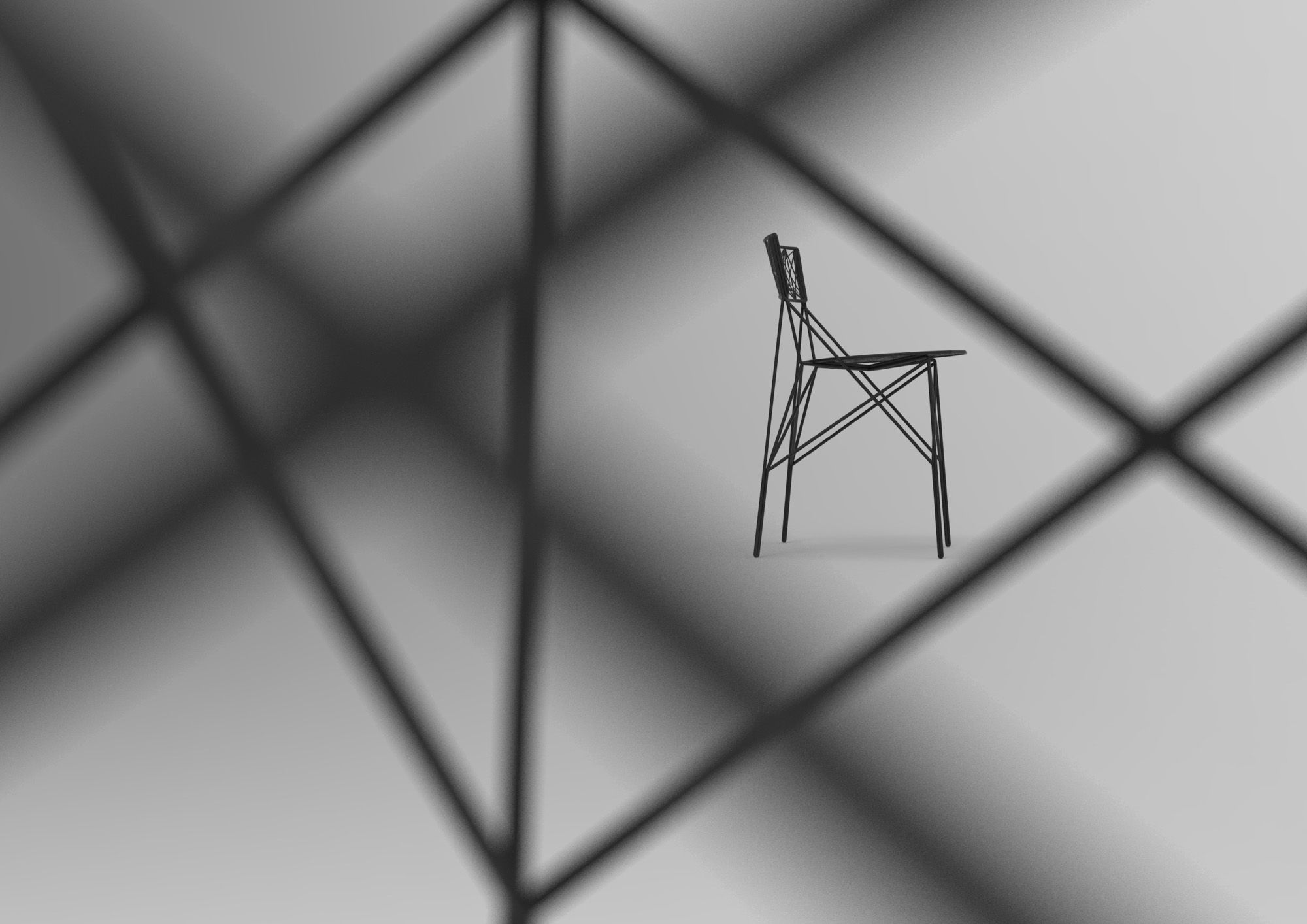 一种儿时的游戏-翻花绳,通过指尖的穿插与变换,将一根闭环的红绳在两人互动的情况下,变换出不同的形态,想象无穷,乐趣无穷。翻花绳椅便是根据儿时这一游戏产生的灵感,将碳纤维丝通过定点的结构方式,穿插缠绕出一款充满想象力与惊喜的椅子。