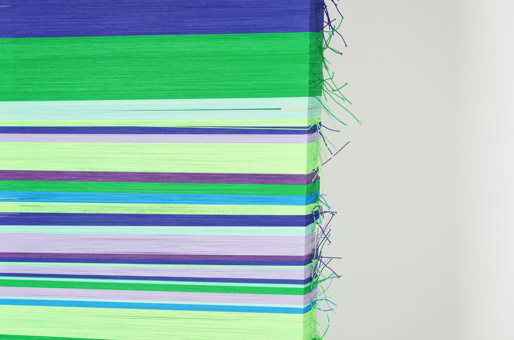 她对现代弹力线和天然竹丝的编织很感兴趣,灵活是这两种材料的共性,可以适应各种结构和形状,但又能追溯到不同源头,因此她尝试如何将它们结合在一起。竹子并非此作品的主要材料,该作品的制作选用了过去在编织中使用得较少的精细竹丝,这些竹丝取材于自竹子初皮下的第一层,其工艺尤为精细,制作难度高,带有四川竹材特有的天然香味。