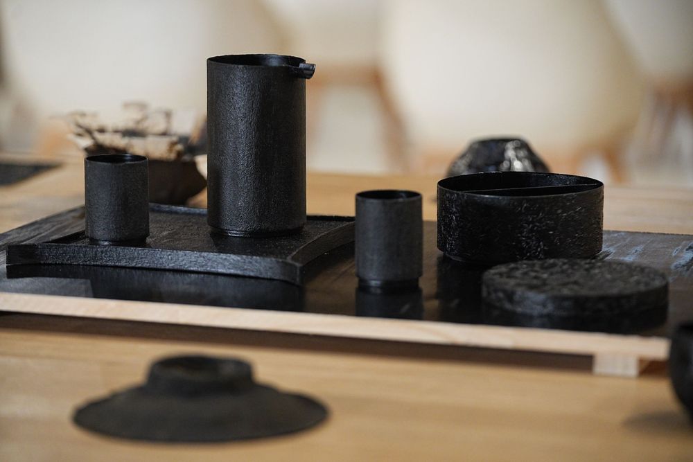 《素》通过四种形式——一个托盘、两个杯子、一个盛酒器和一个盒子,重新解释日常仪式。每件作品都是用纸制成的,经过机器精确切割,组装后以手工髹漆的方式塑造其纹理。在这个过程中,脆弱的材料获得了意想不到的弹性和耐用性。