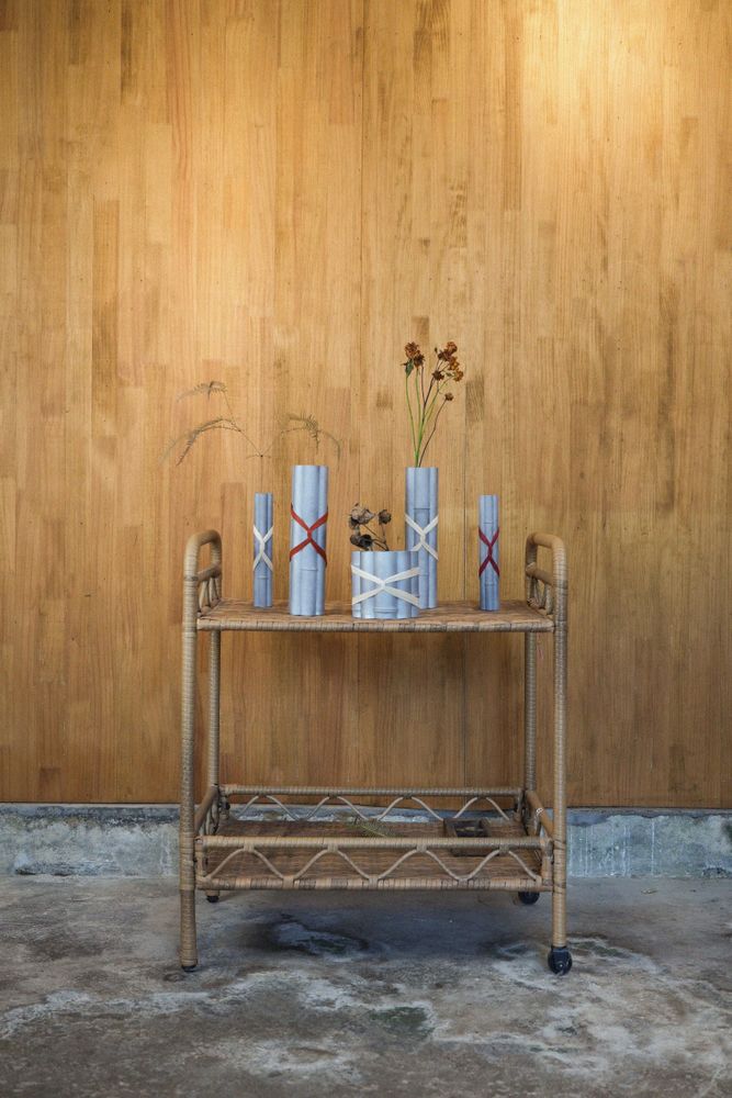在《素》系列中,他分享了在福州与景德镇研习大漆技艺的经历,通过在地创作与肌理实验后,他把这些经验转化到一组器皿设计之中,用来解释日常仪式。在《节点》中,他从宁波保国寺柱式中汲取灵感,把自己对竹子的映象融入花瓶设计中,在自然造物与工业产物之间,他以竹(藤)编作为一种连结方式。Léon把传统与现代的对话作为出发点,而不只是手段,这也成为他创作中非常鲜明的特点。